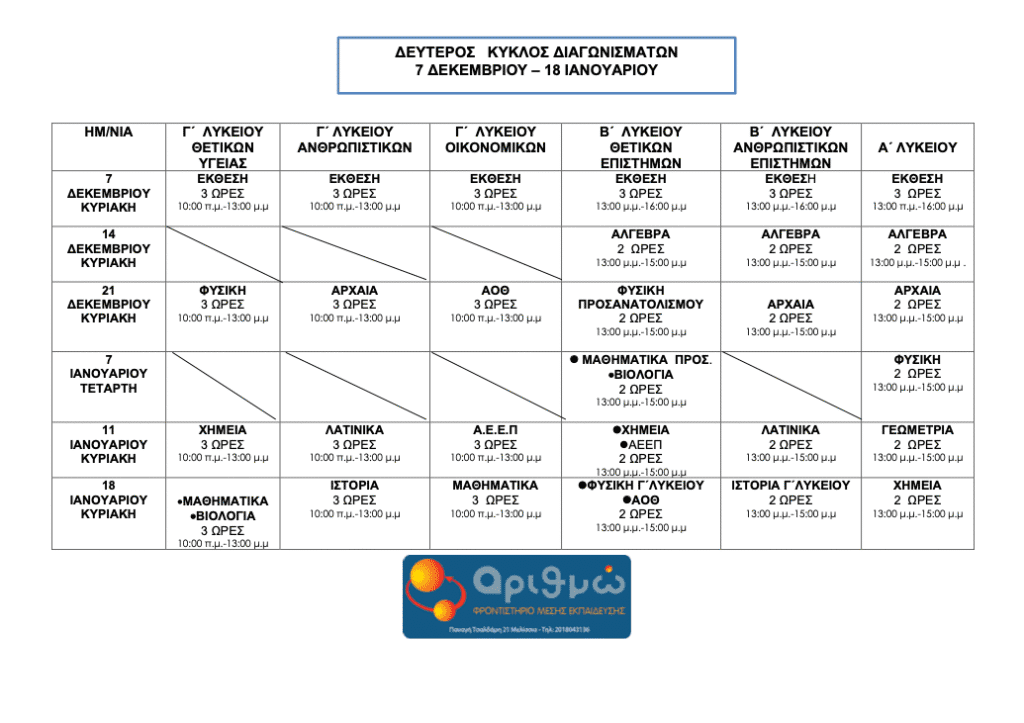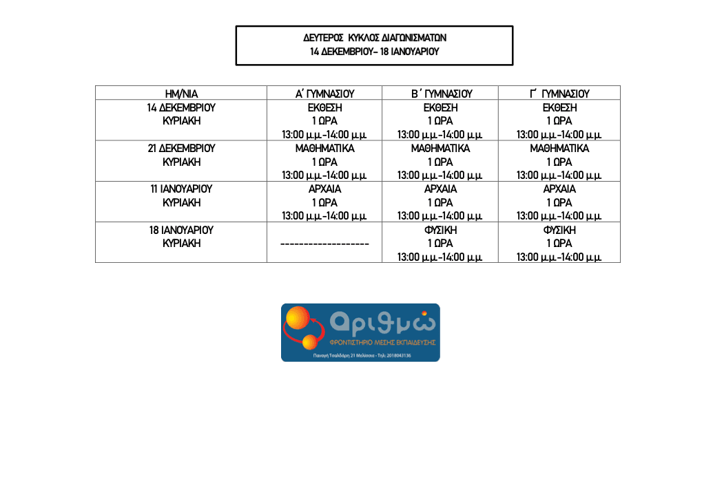 Οι ενημερώσεις γονέων γίνονται τις ίδιες ώρες και μέρες με τα διαγωνίσματα.