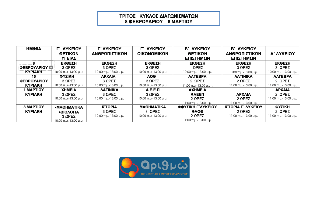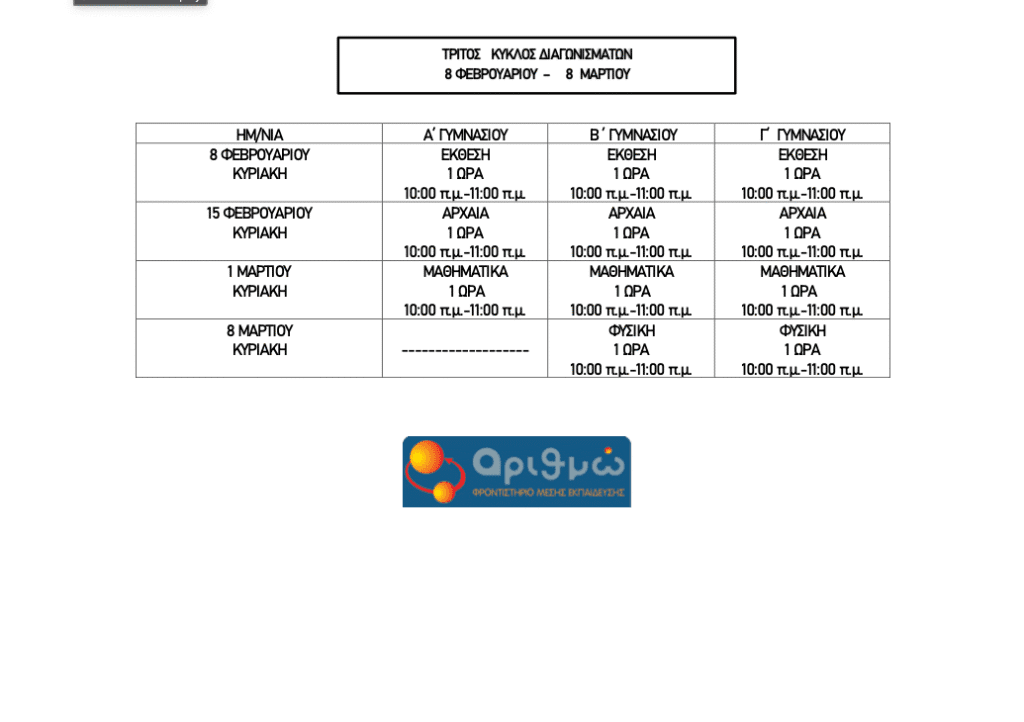 Οι ενημερώσεις γονέων γίνονται τις ίδιες ώρες και μέρες με τα διαγωνίσματα.
